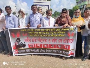 মেহেদী হাসানঃ যশোরের চৌগাছায় উদীচী শিল্পগোষ্ঠীর আয়োজনে নারীর প্রতি সহিংসতা ও ধর্ষণের প্রতিবাদে মানববন্ধন অনুষ্ঠিত হয়।